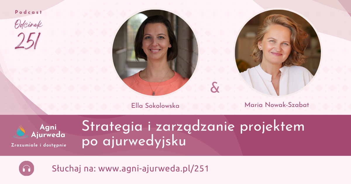 W tym odcinku zapraszam Cię do posłuchania rozmowy z Ellą Sokołowską o tym, co oznacza zarządzanie projektem po ajurwedyjsku. Ella ukończyła właśnie cz. I Szkoły Ajurwedy. Mówi o sobie, że jest ajurwedyjskim strategiem rozwoju biznesu i wspiera przedsiębiorcze kobiety. Tworzy strategie biznesowe oparte na zintegrowaniu Ajurwedy z nowatorskimi metodami i technikami wzrostu biznesu. Ella na co dzień mieszka i pracuje w Wielkiej Brytanii, dlatego cieszę się, że zarządzanie projektami w duchu Ajurwedy wchodzi do anglojęzycznej przestrzeni. Jest to bardzo bliskie temu, co od lat promuję w ramach programu Ajurweda Biznes Coaching, gdzie uczę o wykorzystywaniu Ajurwedy jako sposobu zarządzania sobą i firmą. Rozmowy możesz posłuchać w formie podcastu lub pooglądać na YouTube.