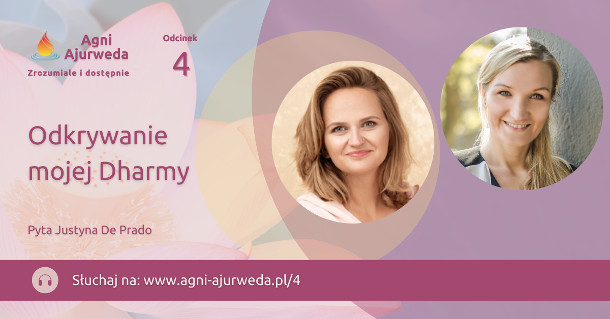 W 4. odcinku podcastu Agni Ajurweda zapraszam Cię do pierwszej rozmowy. Rozmowy… ze mną, którą przeprowadziła Justyna De Prado, life coach z Wytwórni Obfitości. Opowiadam o Dharmie, czyli, mówiąc najprościej, celu życia.